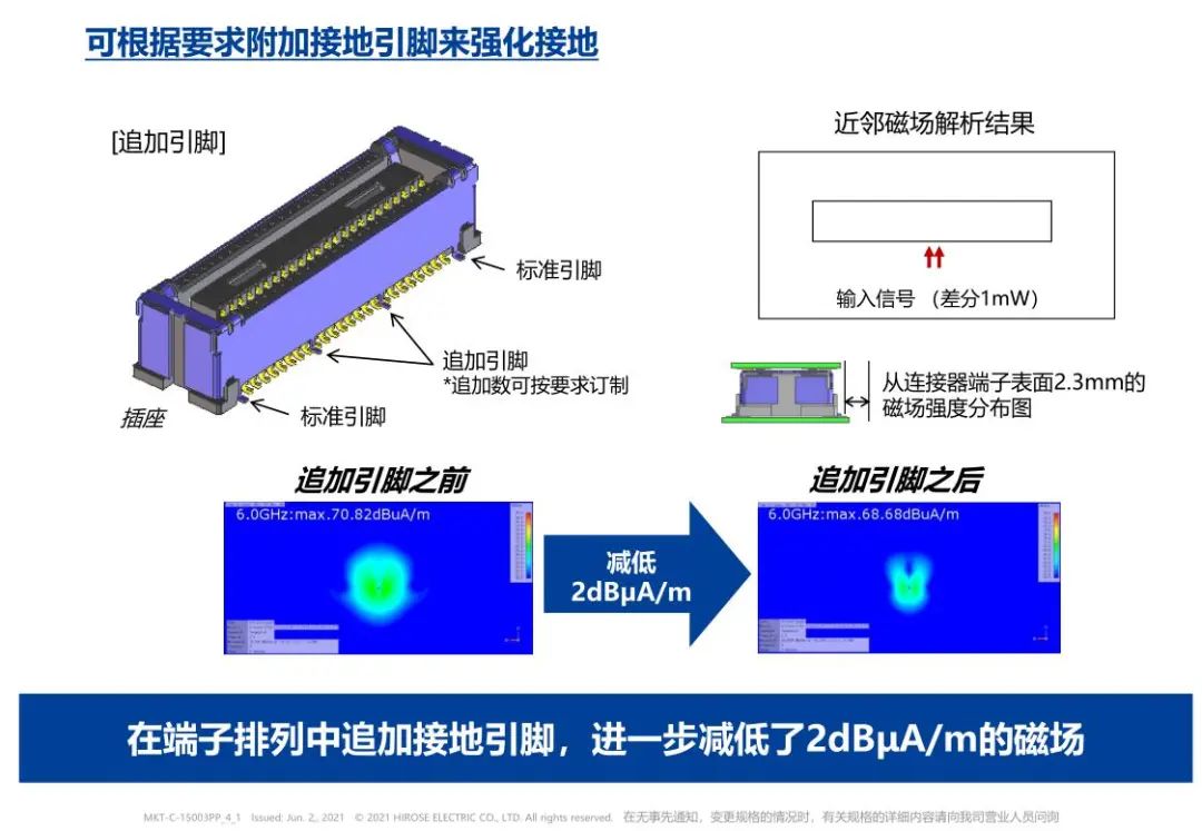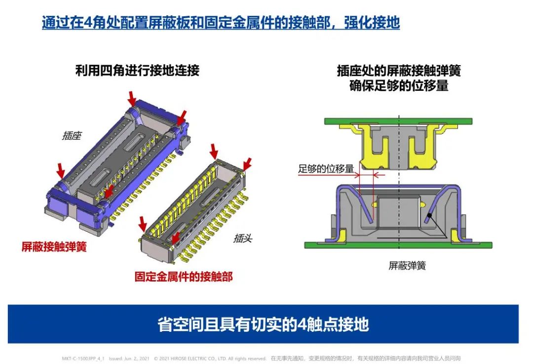 切實的接地構(gòu)造 通過接地實現(xiàn)優(yōu)越的EMI對策 進一步強化接地 檢查用連接器